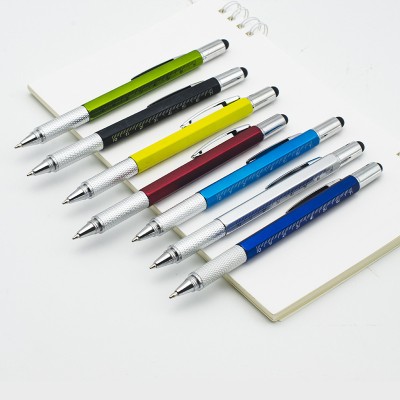 6 in one 1.0mm roll pen promotional gift pen with touch pen ruler screw driver tool